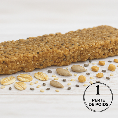 Parfaitement adaptée à un programme de rééquilibrage alimentaire, cette barre répond à vos besoins nutritionnels. Les produits riches en protéines de la Phase 1 - Perte de poids favorisent en effet la perte de poids efficace grâce à leur faible apport en sucres (moins de 5 g par barre) et contribuent à la sensation de satiété grâce à leur forte teneur en protéines.